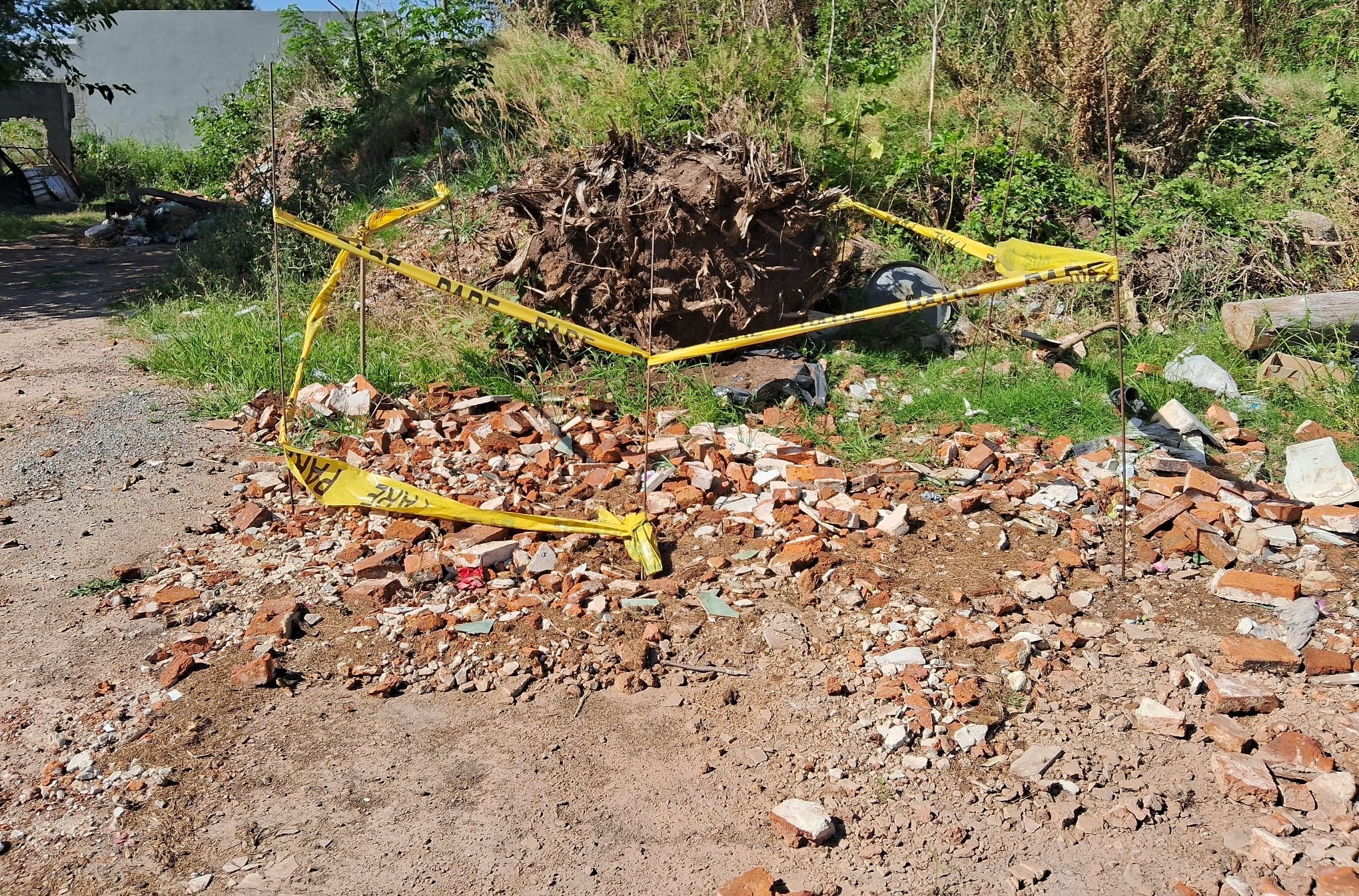 El descubrimiento se produjo en el lugar donde había sido plantado, en 1974, un árbol en memoria de Aldo Perrini, conocido como “Chiquito”. El ejemplar fue retirado hace más de un año, pero fue recién en las últimas semanas, al remover parte del terreno y restos de raíces, cuando aparecieron los huesos.