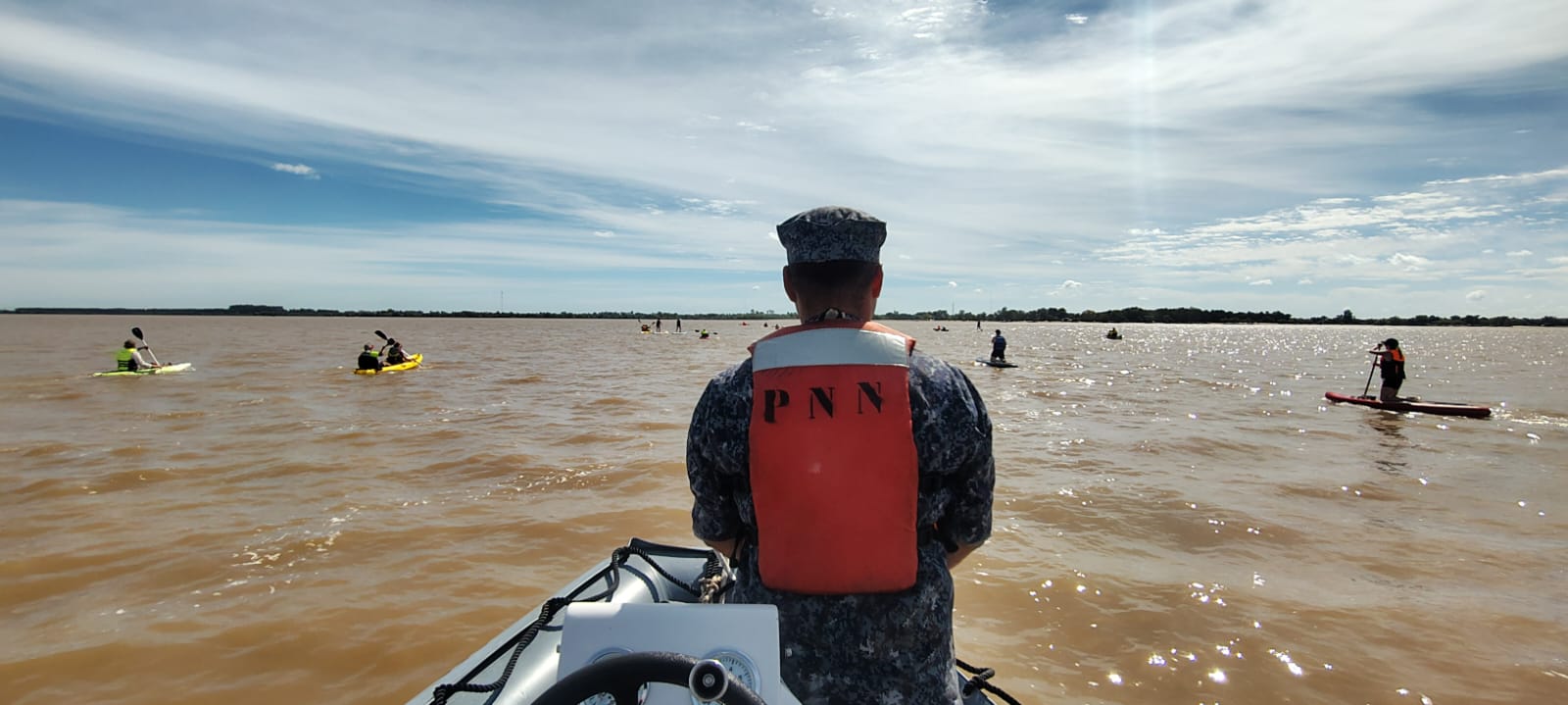 Durante el desarrollo de la actividad, personal de la Subprefectura del Puerto de Carmelo brindó apoyo operativo y cobertura de seguridad. Para ello se dispuso un bote semirrígido con dos tripulantes de la unidad, que acompañaron el trayecto con el objetivo de supervisar el desplazamiento de las embarcaciones y garantizar condiciones seguras durante todo el recorrido.