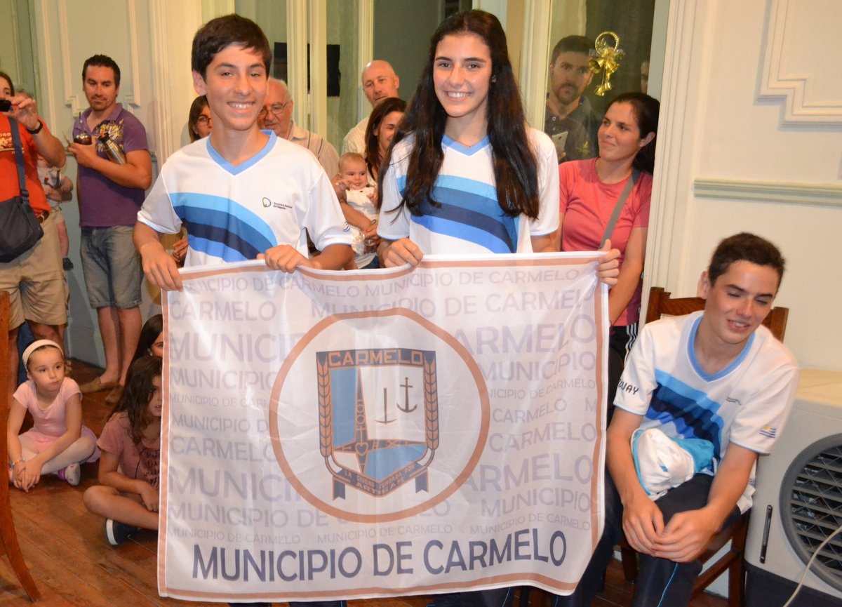 Fue así que la sesión de este miércoles los concejales y Alcalde le entregaron la bandera del Municipio de Carmelo, rindiendo homenaje a los jóvenes por representar a nuestro país y a nuestros ciudad en tan importante competición.