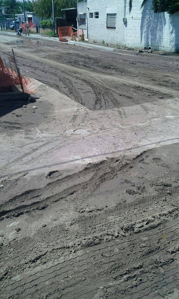 Vecinos nos adjuntaron una serie de fotos donde registra una obra realizada en 25 de Mayo esquina Rivera. Aseguran que hace meses la están «arreglando».