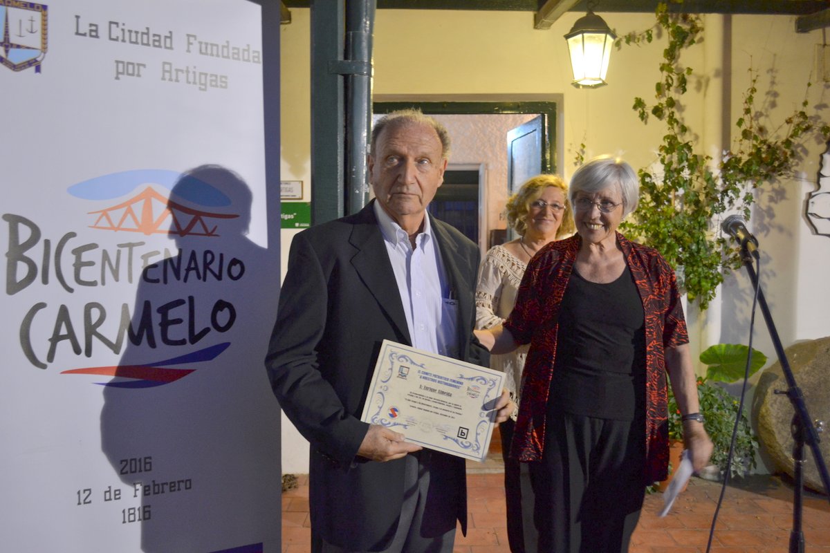 Dicho reconocimiento tuvo lugar en el patio de Casa de la Cultura, en el marco de La Noche de los Museos y el Bicentenario de Carmelo.