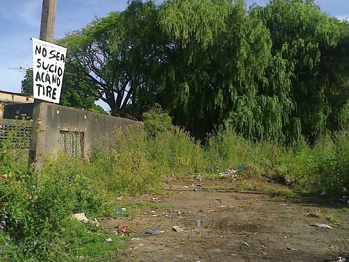 Debido a la situación que se vive en la zona, luego de que hoy se volviera a limpiar el terreno, vecinos colocaron un cartel que decía lo siguiente; “no sea sucio, acá no tire”.