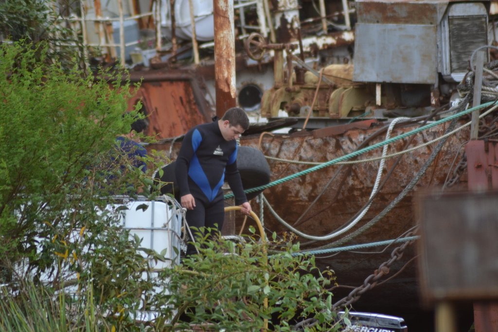 Desde las 10 y 30 de la mañana personal de Bomberos, Sub-Prefectura de Carmelo, Municipio de Carmelo e Intendencia de Colonia vienen trabajando en el predio del ex Astillero Maffoni, sobre el Arroyo de las Vacas donde una de las embarcaciones viene perdiendo aceite y también combustible.