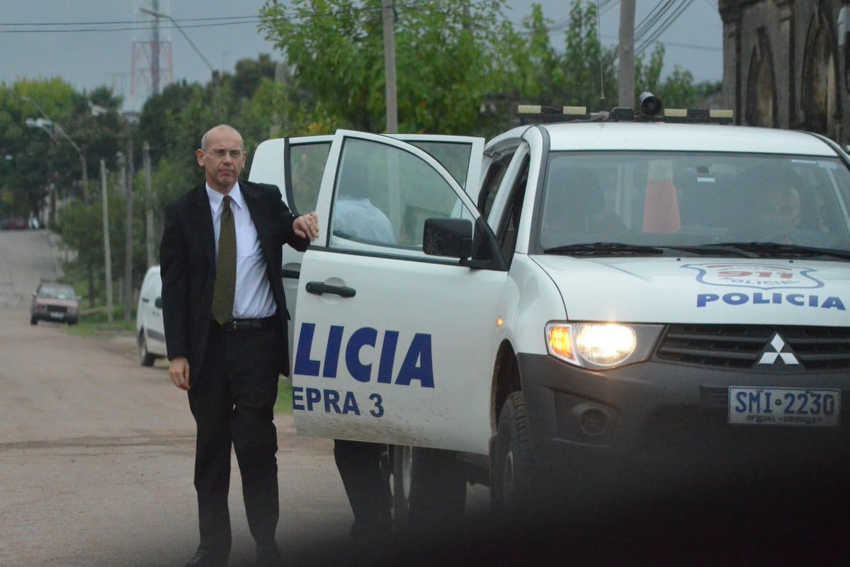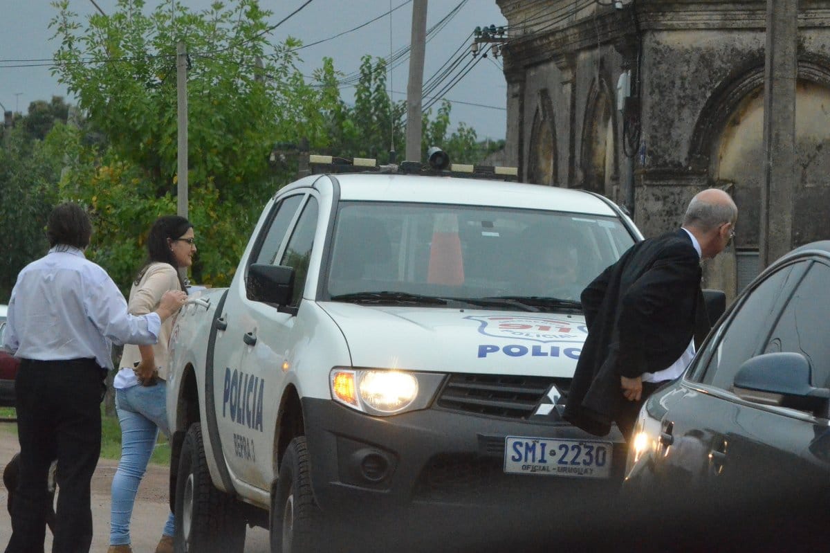 Minutos antes de las 17 horas, el Juez que atiende la causa llegó en un movil policial al domicilio de Velazco, acompañado por personal del Juzgado Letrado de Carmelo y el Fiscal Carlos Chargoñia.