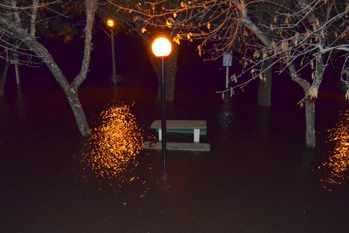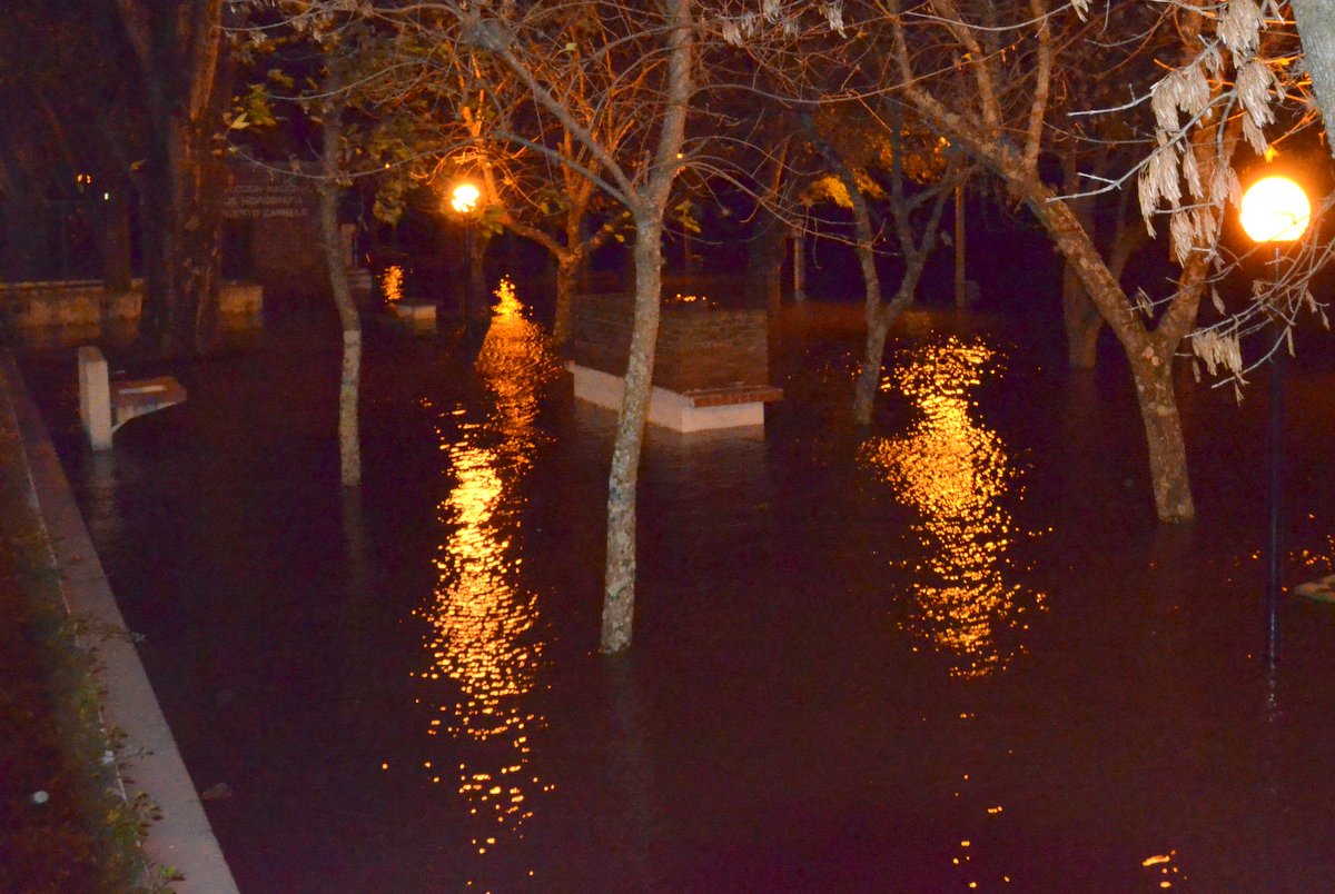Hace instantes Carmelo Portal estuvo en el lugar haciendo imágenes y fue testigo de la altura que viene alcanzando la marea, inundando bancos y parte de algunas de las churrasqueras del Atracadero de Yates.